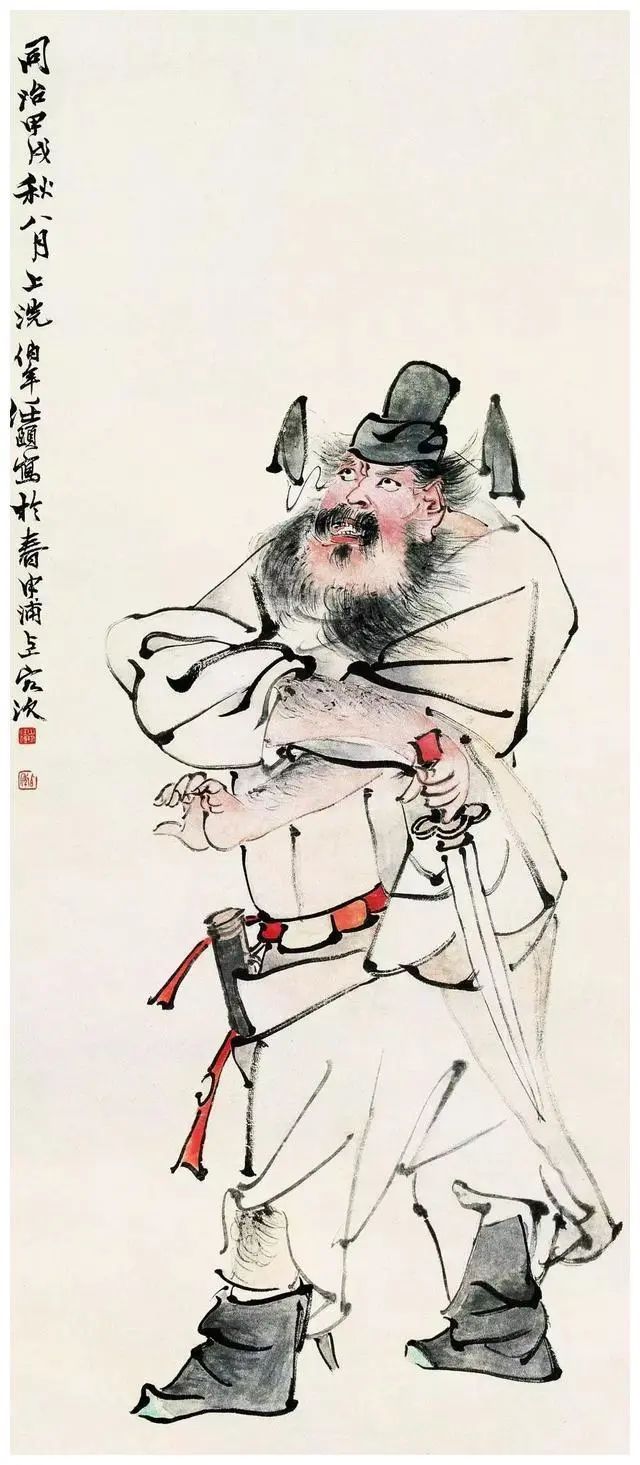 任伯年的东说念主物学陈老莲,上追宋、元,半丁先生说:“任渭长学陈老莲作念到了‘挥洒寂静’,而任伯年学陈老莲则一变其法,比任渭长出格。所谓‘入领域而能出领域’,有自家样貌,能独树一帜。他念念想快、构念念巧,比任渭长出格,是很了不得的画家。”