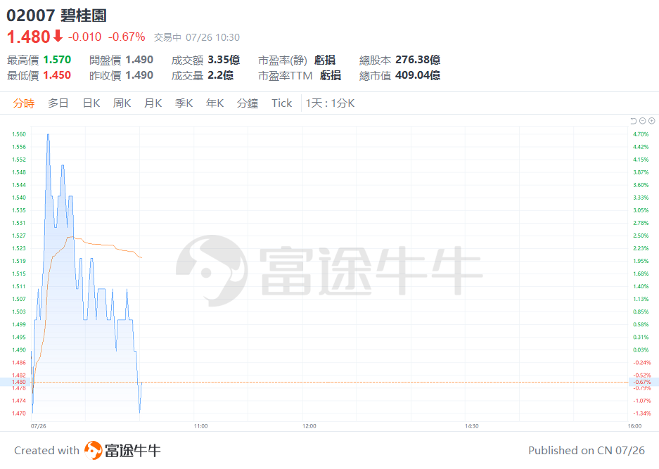 $碧桂园(02007.HK)$冲高回落,现跌近1%,机构预测要点城市限贷限购等策略有望进一步优化。