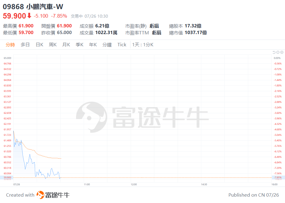 个股方面,$小鹏汽车-W(09868.HK)$跌近8%,乘联会预测7月狭义乘用车零卖销量同比环比均降。
