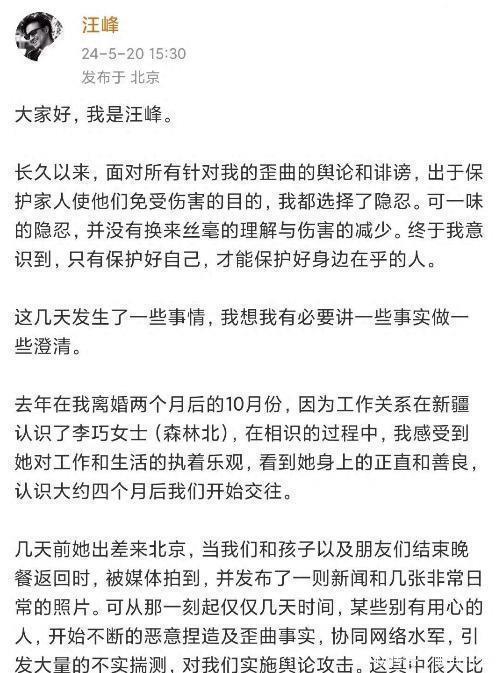 简略是因为网罗上的公论声太大了,汪峰才不得不在520这天官宣恋情,并对一些网罗谣喙作念出了分解。