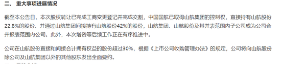 2023年3月,中国国航公告称,已取得山航集结作束权,径直持有山航22.8%的股份,并通过山航集团曲折持有山东航空42%的股份,山航集团、山东航空过头并表边界内子公司成为中国国航合并报表边界内公司。